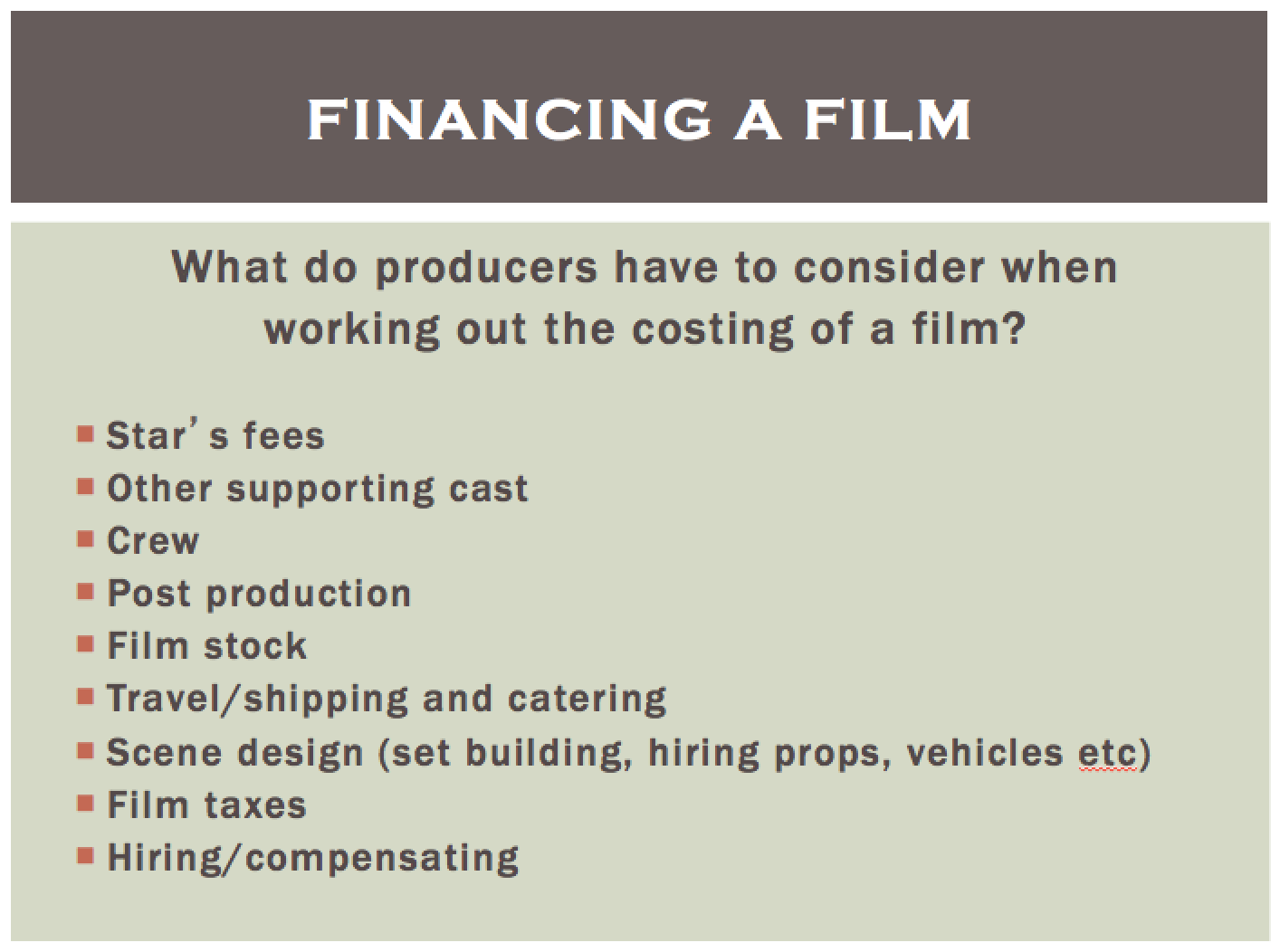 At CPG, we understand the many complexities in finding capital to help fund your production. In today's financial market, one of the things that becomes challenging for many filmmakers is the fact that there are so many other opportunities in the current market that have a more secure potential-return for investors. That being said, there are still many investors willing to take risks, and we are here to help you lay out the many options you have in regards to financing your production.
